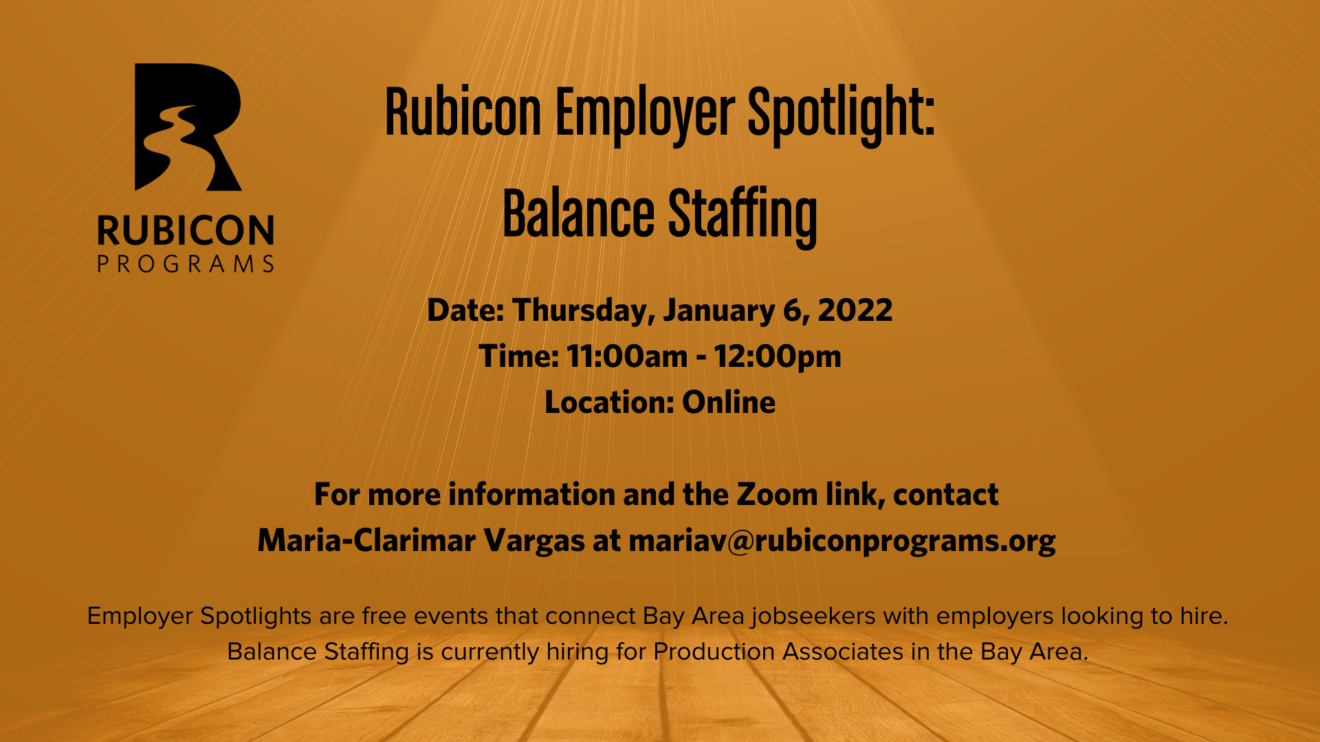 Rubicon Employer Spotlights connect Bay Area jobseekers with employers who are looking to hire. Come see what this week's employer has to offer!